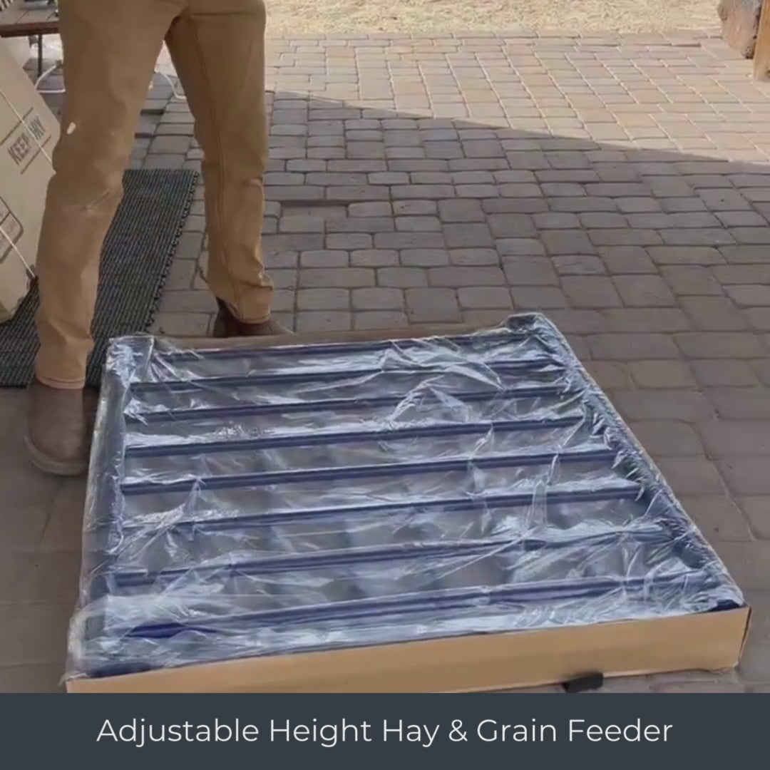 Farm and Yard's "MultiFeeder" is a heavy-duty, adjustable height hay and grain feeder for Horses, Goats, Sheep, Alpacas and other animals.